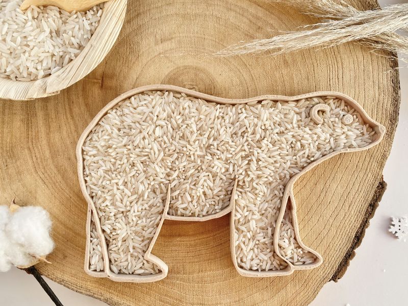 Esta bandeja con forma de oso polar es ideal para preparar propuestas de juego creativo y sensorial. Su diseño invita a rellenarla con plastilina, arroz sensorial, semillas, arena o pequeños elementos naturales, fomentando la imaginación y el aprendizaje a través del juego.