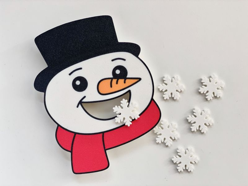 Con su carita dulce y su gran boca abierta, invita a los peques a “alimentarlo” con nieve, bases sensoriales o cualquier cosa que imaginen.